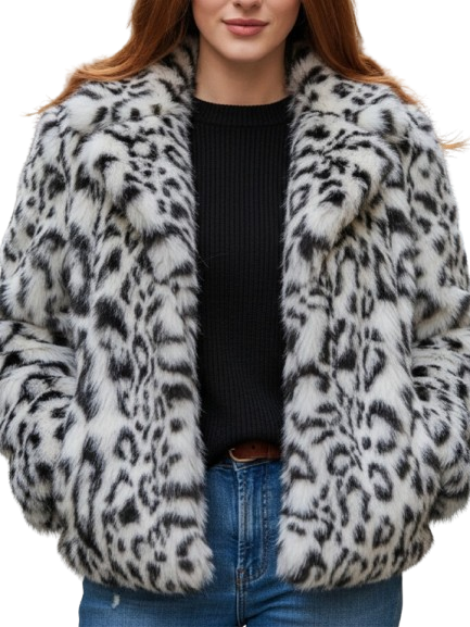 Lysandra - Faux Fur Jas met sneeuwluipaard