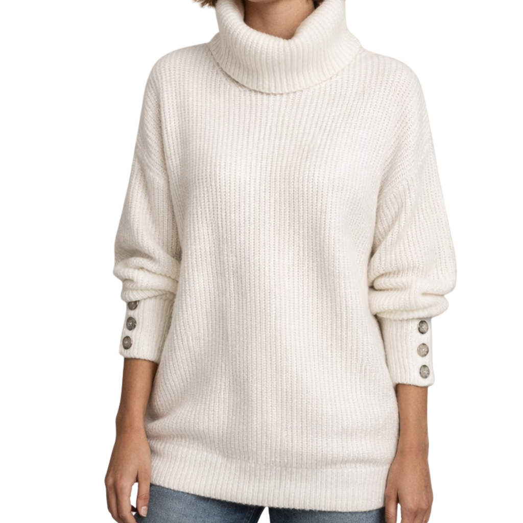 Chloe - Gebreide Trui met Hoge Col en Visgraatpatroon