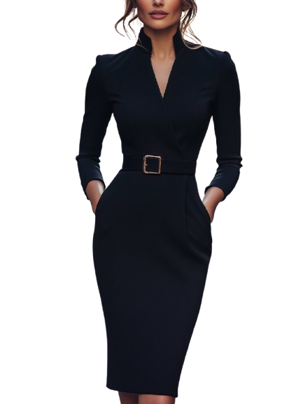 Renata – Verfijnde Ceintuur-jurk met Kokerpasvorm en Mandarijnkraag