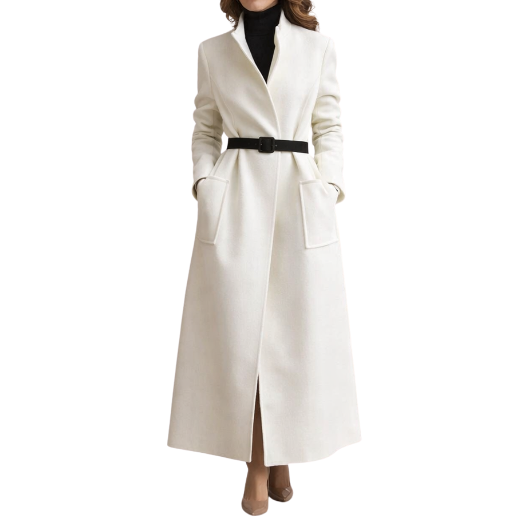 Valentina - Elegante Wollook Mantel met Hoge Kraag