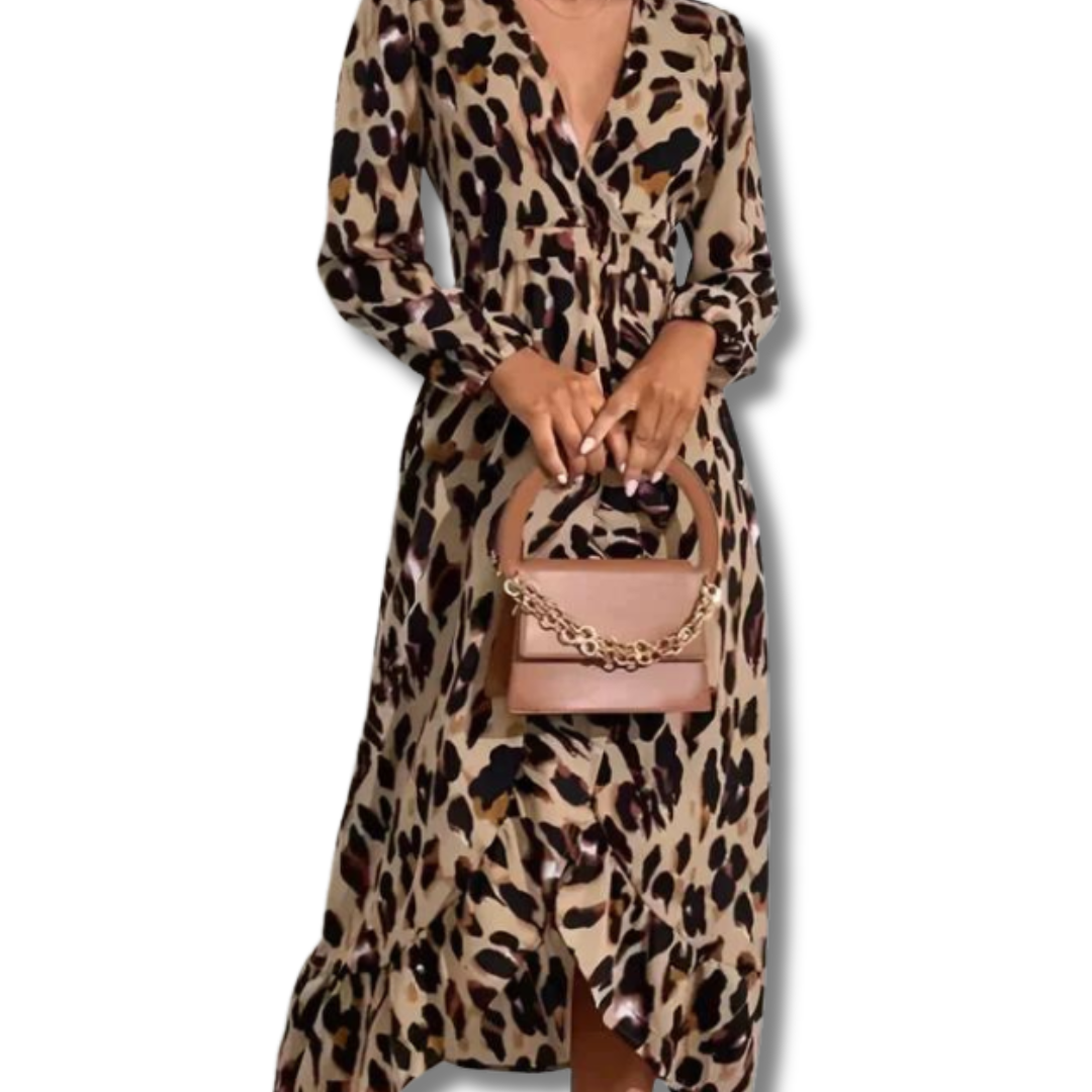 Natali - Panterprint Maxi Overslag Jurk Voor Dames