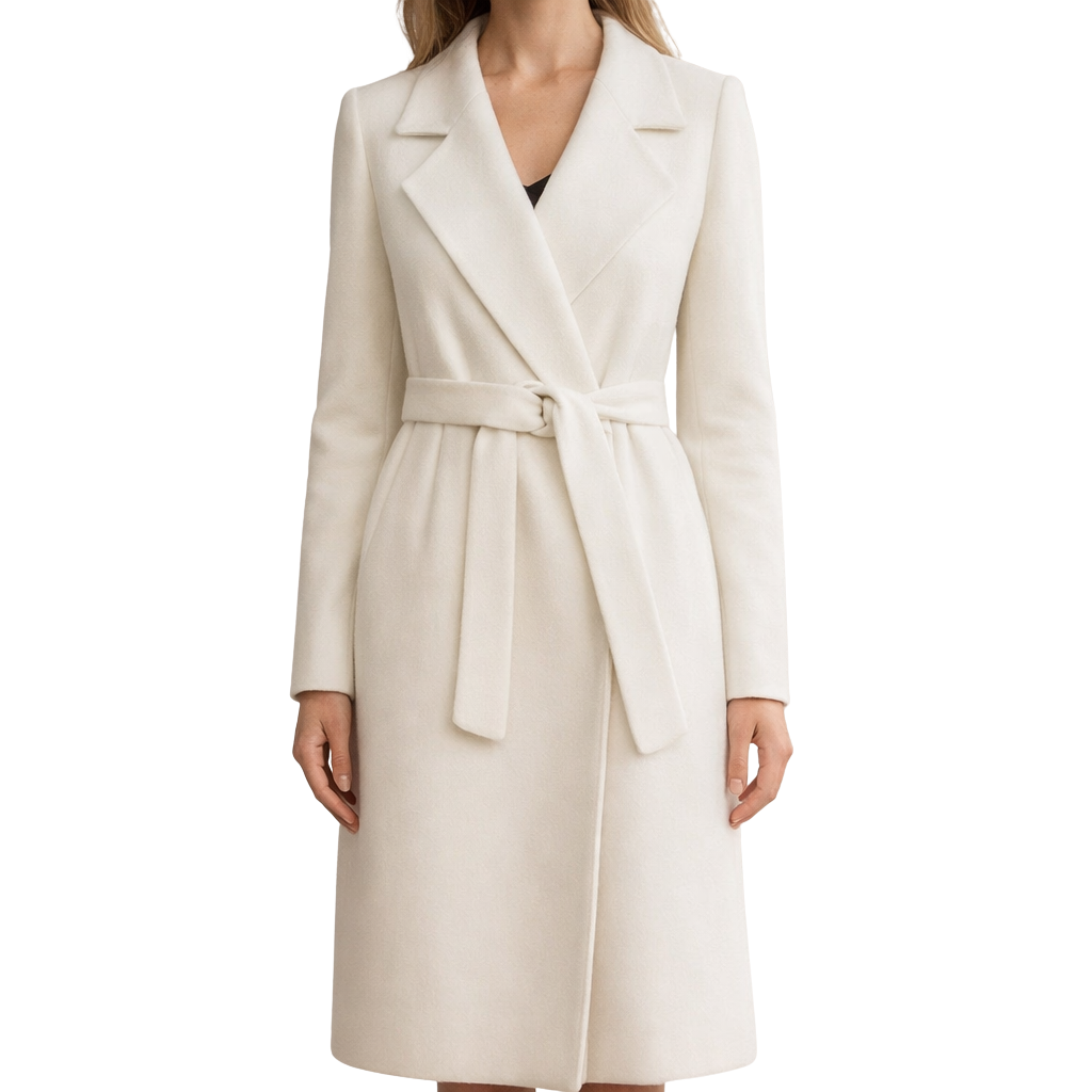 Imelda - Ivoorkleurige Wolmix Omslagmantel met Ceintuur