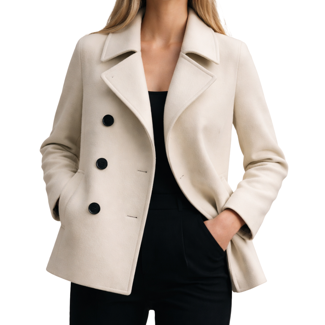 Irena - Ivoorkleurige Korte Double-Breasted Mantel