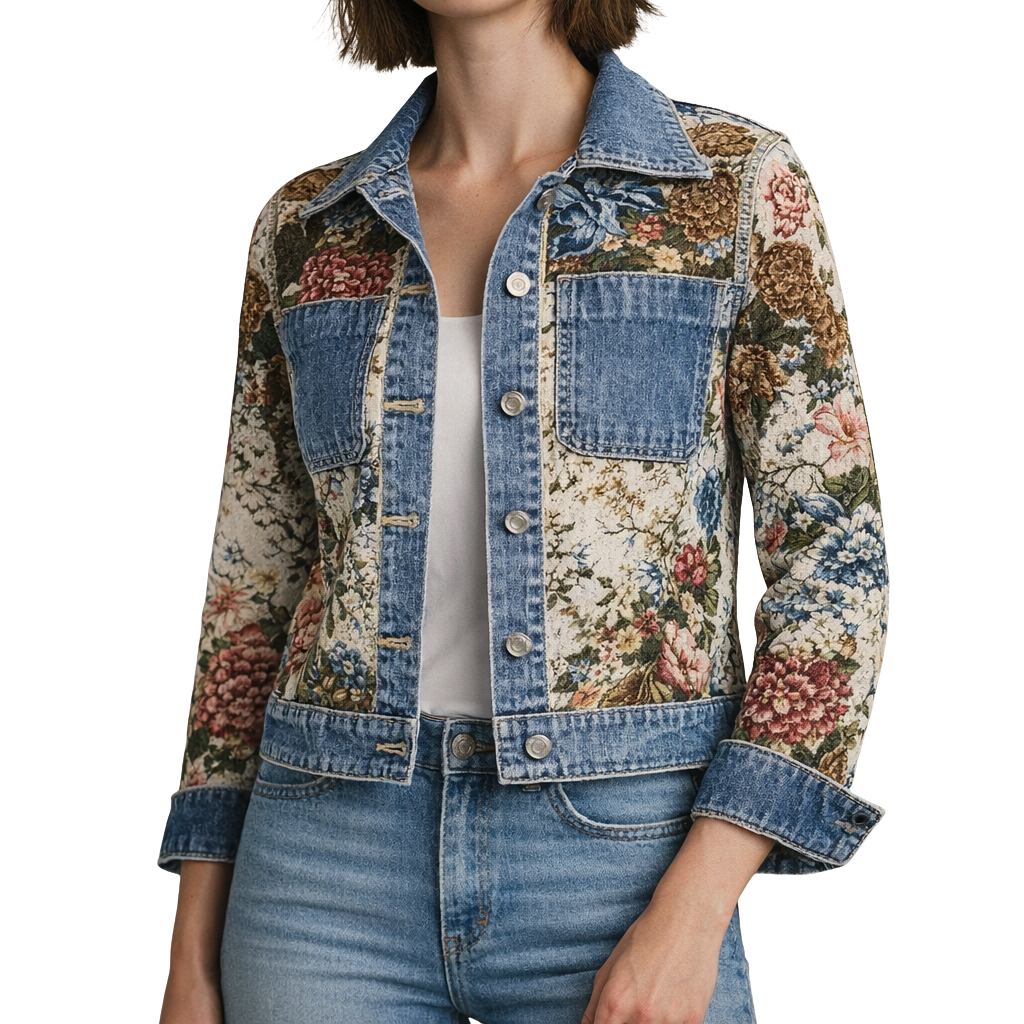 Lana – Bedrukt Denim Jacket voor Dames met Lange Mouwen