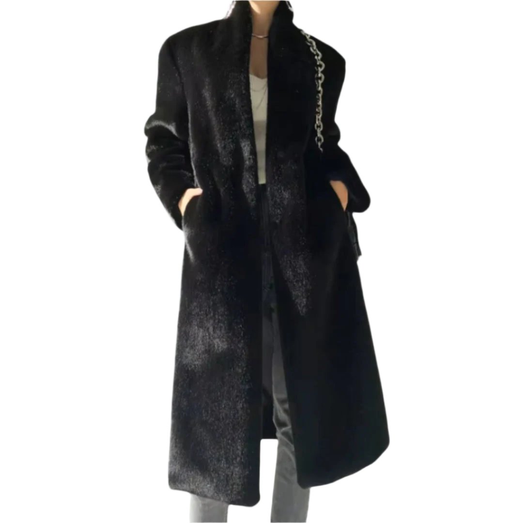 Tayla - Elegante Losvallende Lange Damesjas Met Zachte Bonttextuur