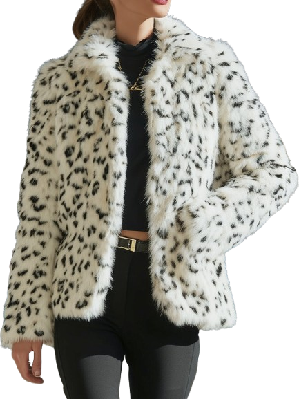 Mirella - Witte Faux-Fur Jas met Sneeuwluipaardprint