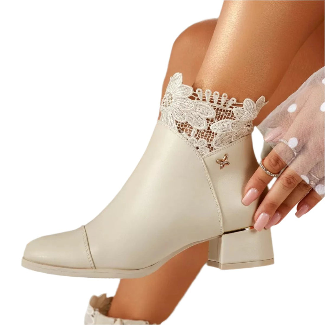 Aislinn - Modieuze Enkellaarsjes Met Bloemenkant Afwerking