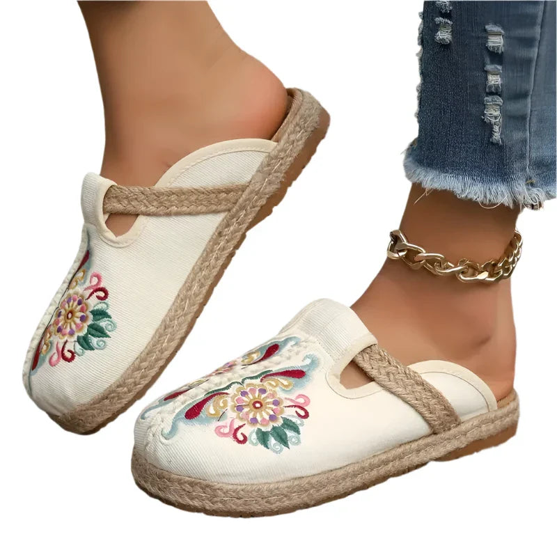 Inaya - Stijlvolle Platte Damesschoenen met Elegant Bloemenmotief