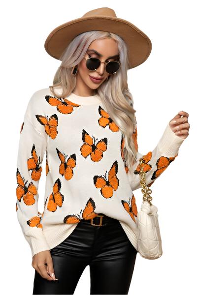 Nolia - Elegante Damestrui Met Vlinderprint, Ronde Hals En Lange Mouwen