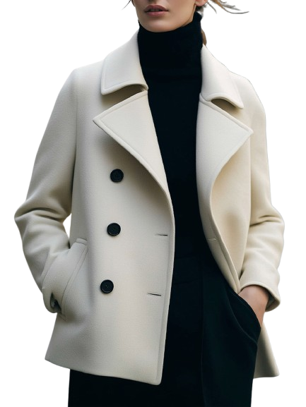 Irena - Ivoorkleurige Korte Double-Breasted Mantel