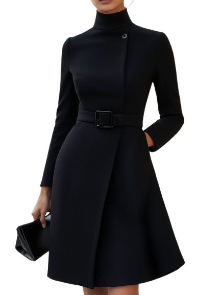 Mondiva – Asymmetrische Hoge Hals Jurk met Ceintuur