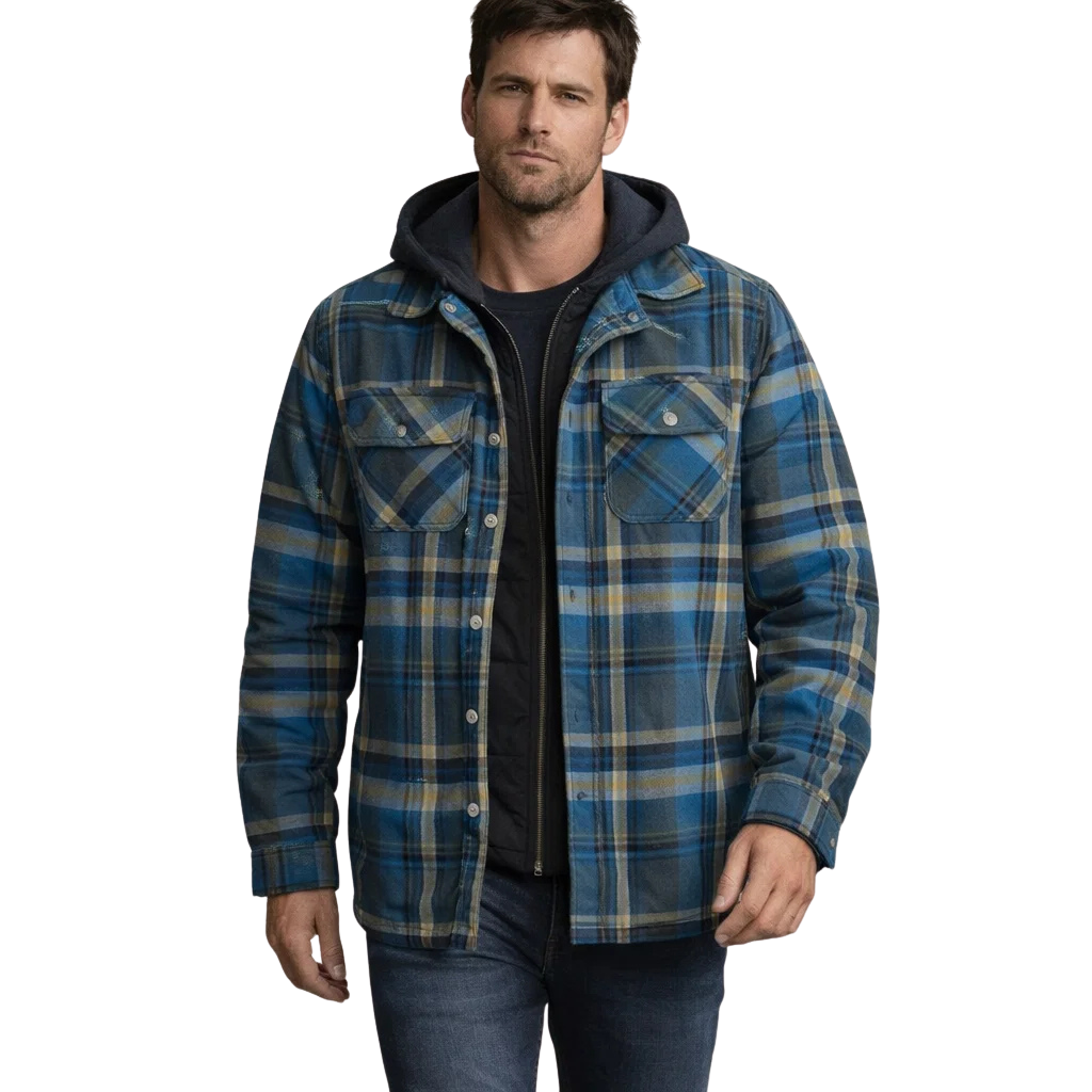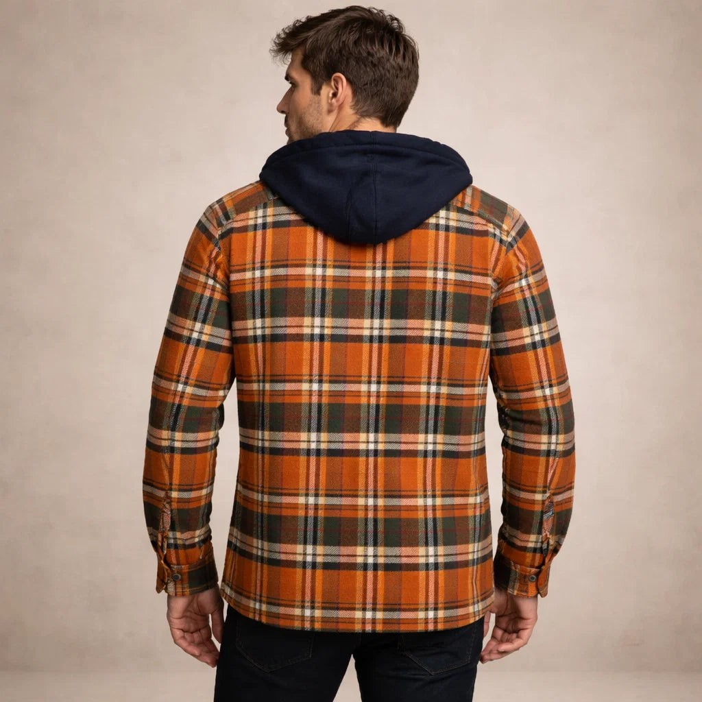 Abiel – Warme Herenjas met Geruit Design en Capuchon