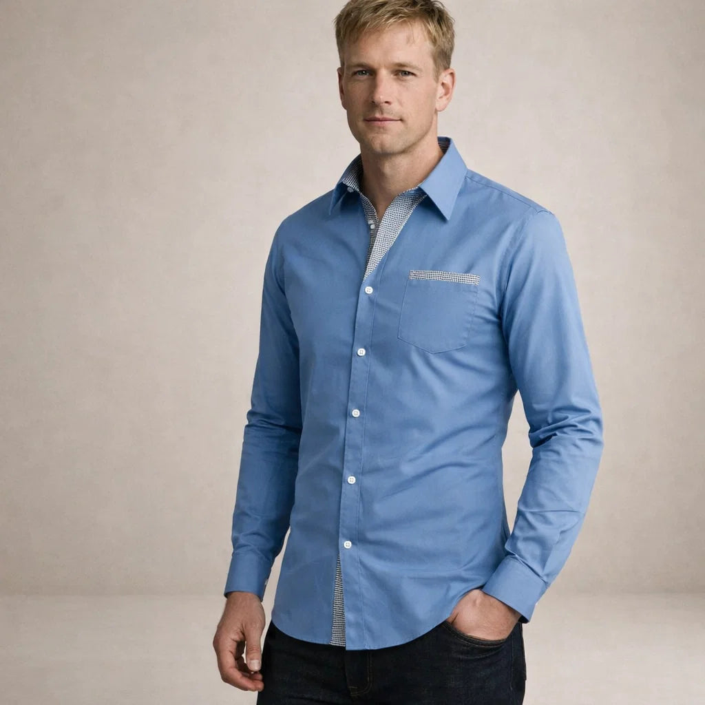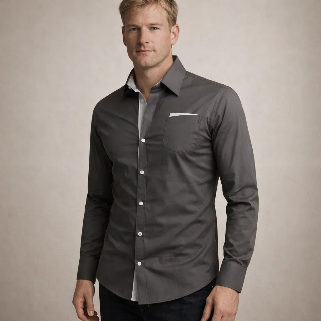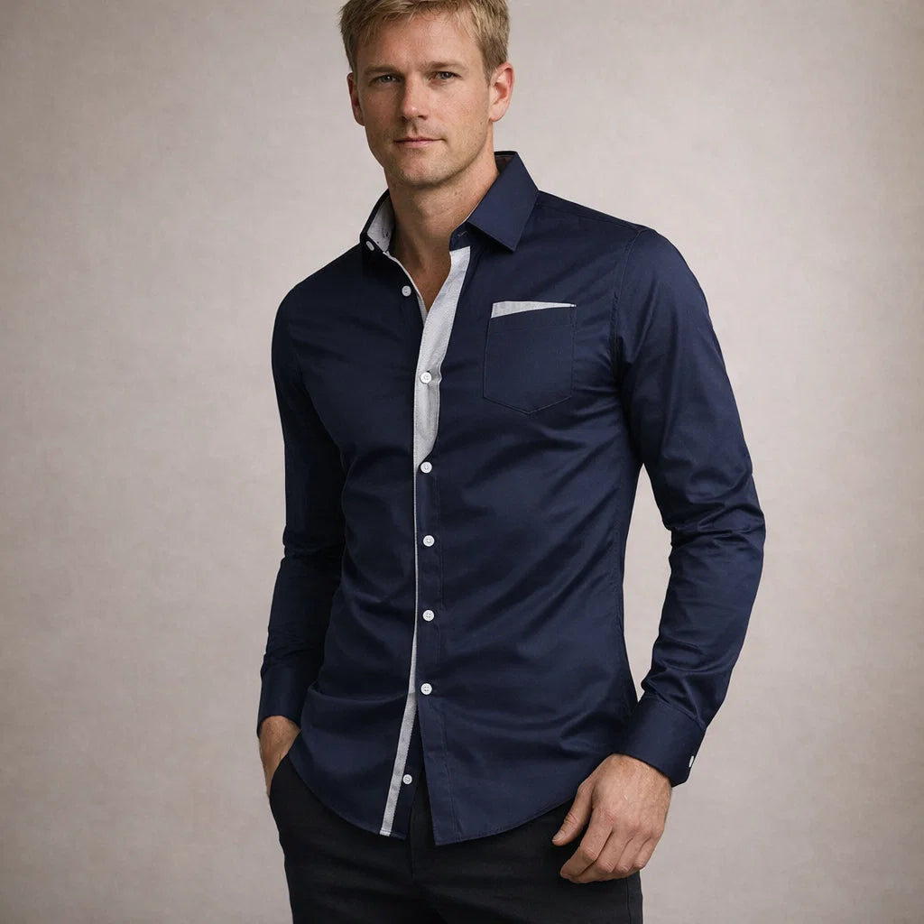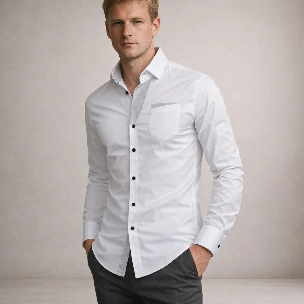 Adriaan - Klassieke Blouse met Openstaande Kraag voor Heren