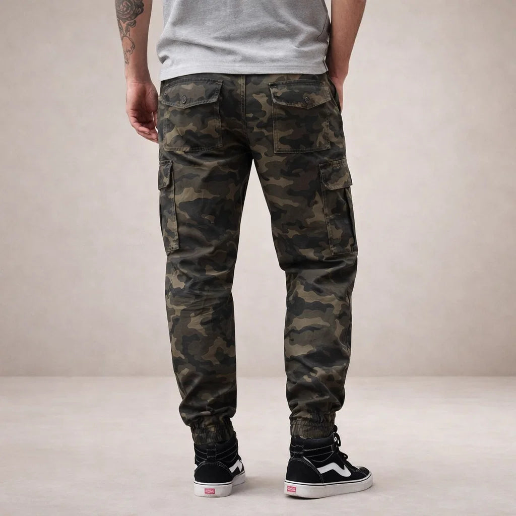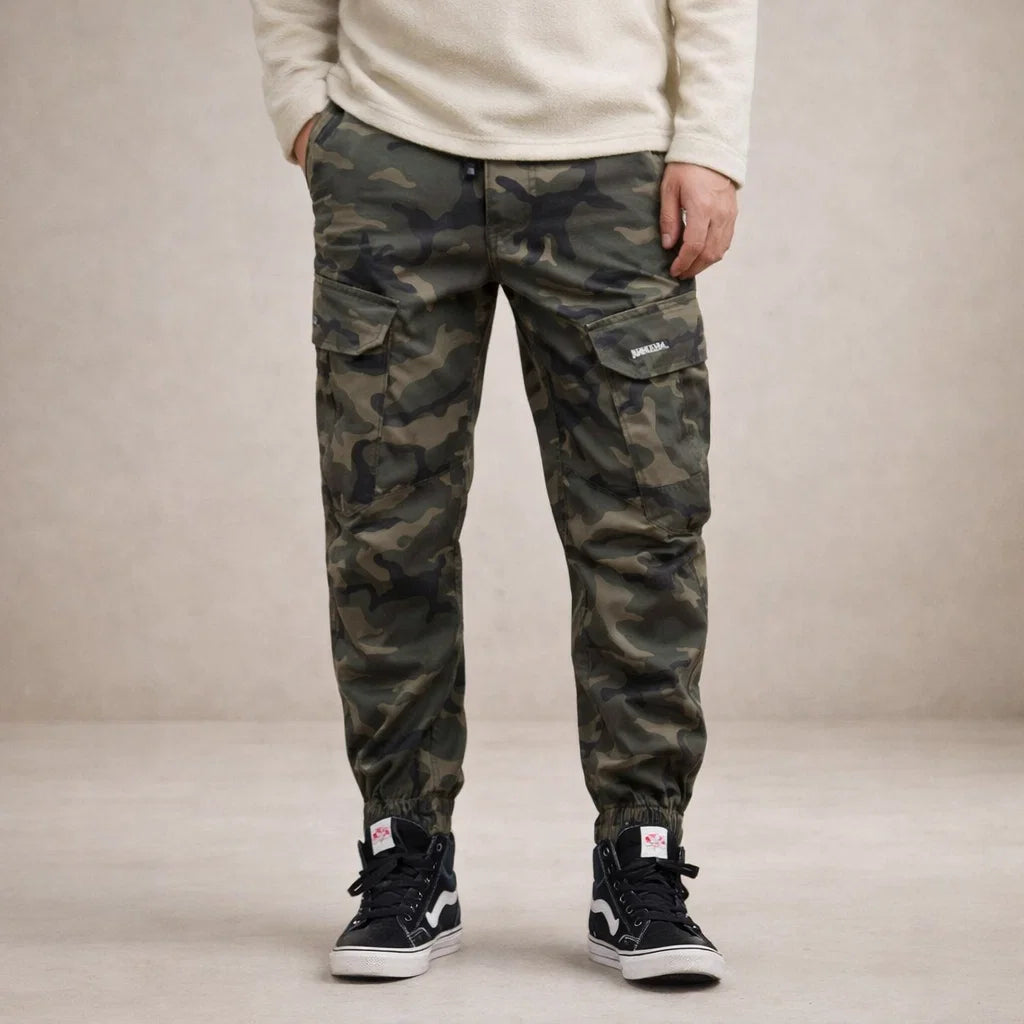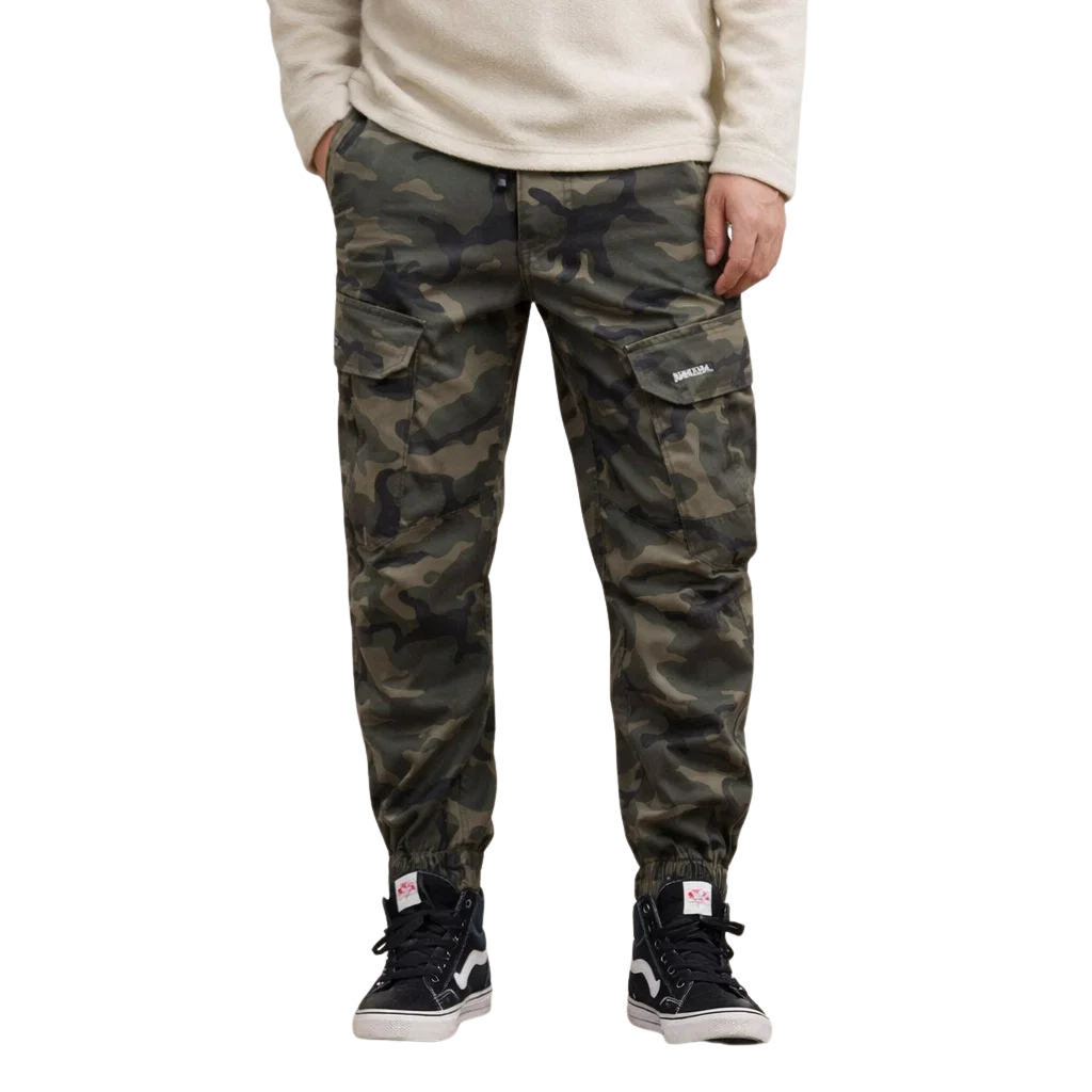 • Details: Camouflageprint, cargozakken met klepsluiting op de benen en functionele steekzakken voor praktisch gebruik.