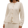 • Details: Fijngebreide stof, ronde halslijn en subtiele knoopdetails voor een tijdloos en verzorgd uiterlijk.