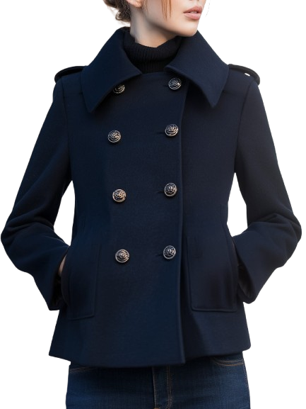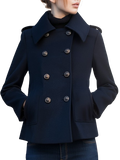 Carys - Marineblauwe Wollen Dubbelgeknoopte Peacoat