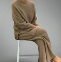 Beleef het ultieme samenspel van stijl en comfort met de Ceridwen Wol Tweedelige Set Voor Dames. Dit verfijnde ensemble is ontworpen voor de moderne vrouw die waarde hecht aan zowel mode als gemak. De high-waist broek benadrukt je silhouet, terwijl de wijde pijpen zorgen voor een elegante uitstraling die elk figuur flatteert. Gemaakt van hoogwaardige wol voelt de set zacht aan op de huid en biedt het de perfecte warmte voor zowel werk als informele uitstapjes.