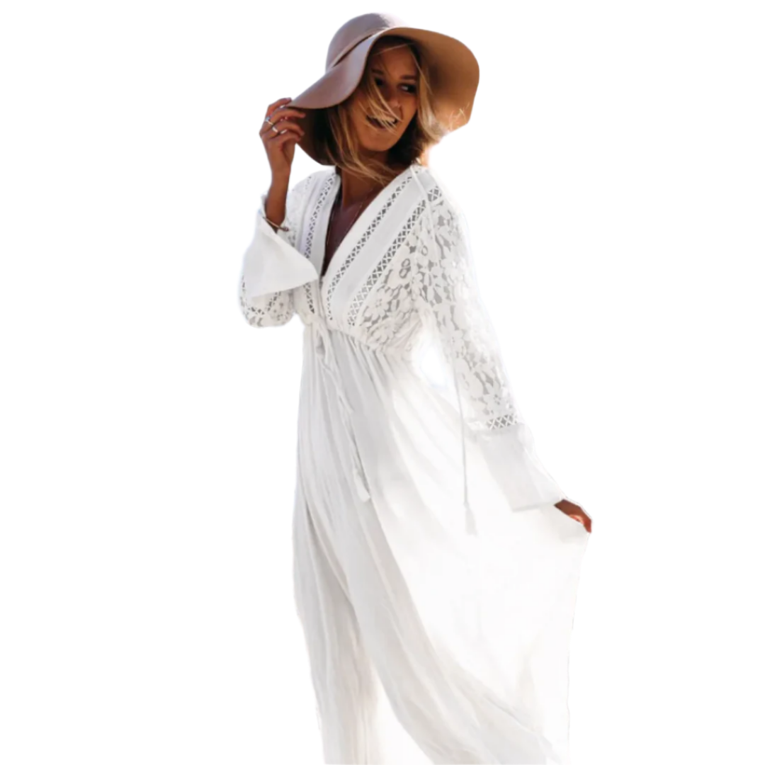 Laat je innerlijke bohemien stralen met onze Witte Boho Maxi Jurk!