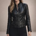 Claret – Zwart Leren Jack met Hoge Kraag