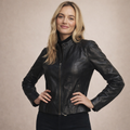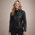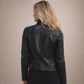 Dit jack is uitgevoerd in een gladde leren afwerking en heeft een kort, gestructureerd silhouet dat het bovenlichaam accentueert. Het ontwerp combineert een strakke belijning met functionele details, waardoor het geschikt is voor zowel dagelijks gebruik als meer geklede gelegenheden. De neutrale kleur en verfijnde afwerking zorgen voor een tijdloze en veelzijdige uitstraling.