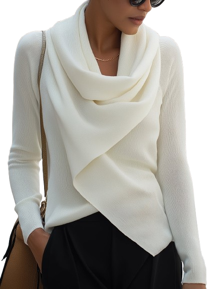Delora – Gedrapeerde Cowl Neck Top met Lange Mouwen