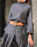 Deze prachtig ontworpen set bestaat uit een vloeiende top en een lange rok, wat zorgt voor een stijlvolle, maar toch informele look.Dankzij de zachte stoffen en zorgvuldige afwerking straal je niet alleen stijl uit, maar geniet je ook de hele dag door van optimaal draagcomfort.