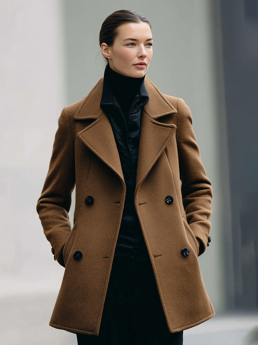 De Edda-mantel combineert gestructureerde pasvorm met veelzijdige elegantie. Met een scherpe reverskraag en double-breasted sluiting met glanzende zwarte knopen, biedt hij een flatterend silhouet en subtiel uitgeslagen zoom voor elegante beweging. Zijzakken en knoopmanchetten voegen praktische details toe. Perfect voor kantoor, stadswandelingen, avondgelegenheden of dag- tot avondlooks.