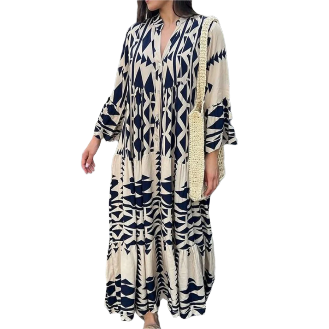 De Ella losse boho zomer/lentejurk voor dames is een perfecte mix van comfort en stijl. Met zijn luchtige pasvorm en boho-design biedt deze jurk een moeiteloze chique uitstraling. Ideaal voor zowel casual uitjes als zomerse feesten.