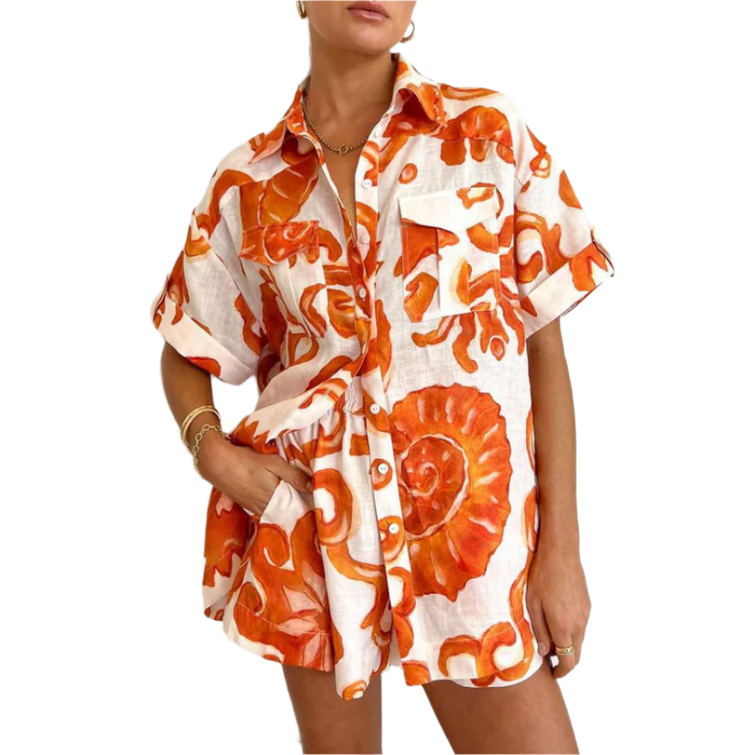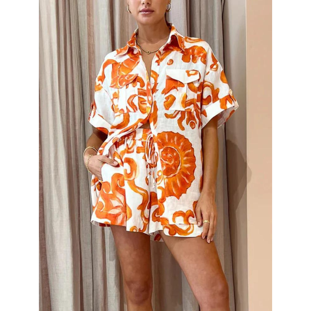 Fiona - Casual Losse Oranje Vormen Bedrukte Zomerset Voor Dames