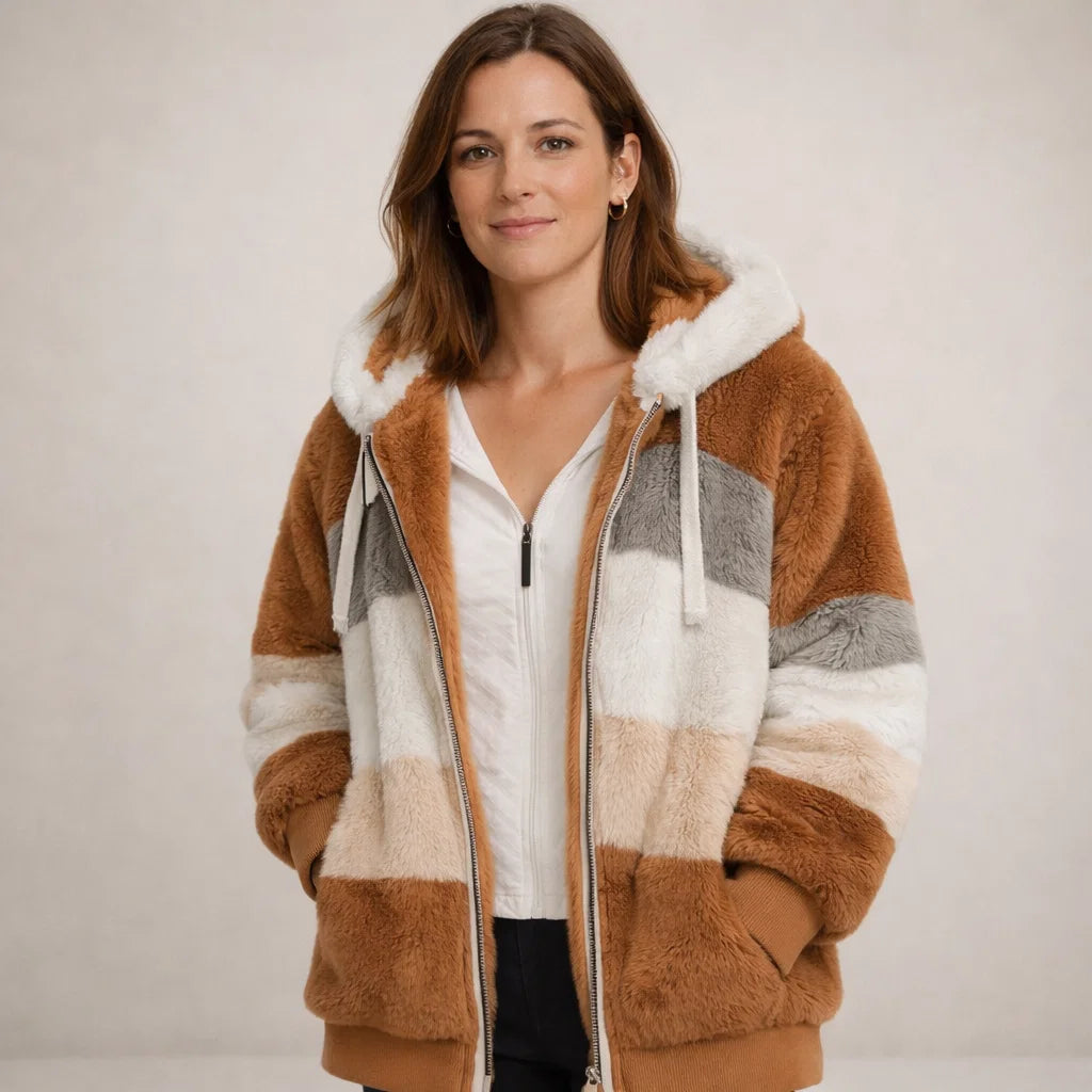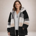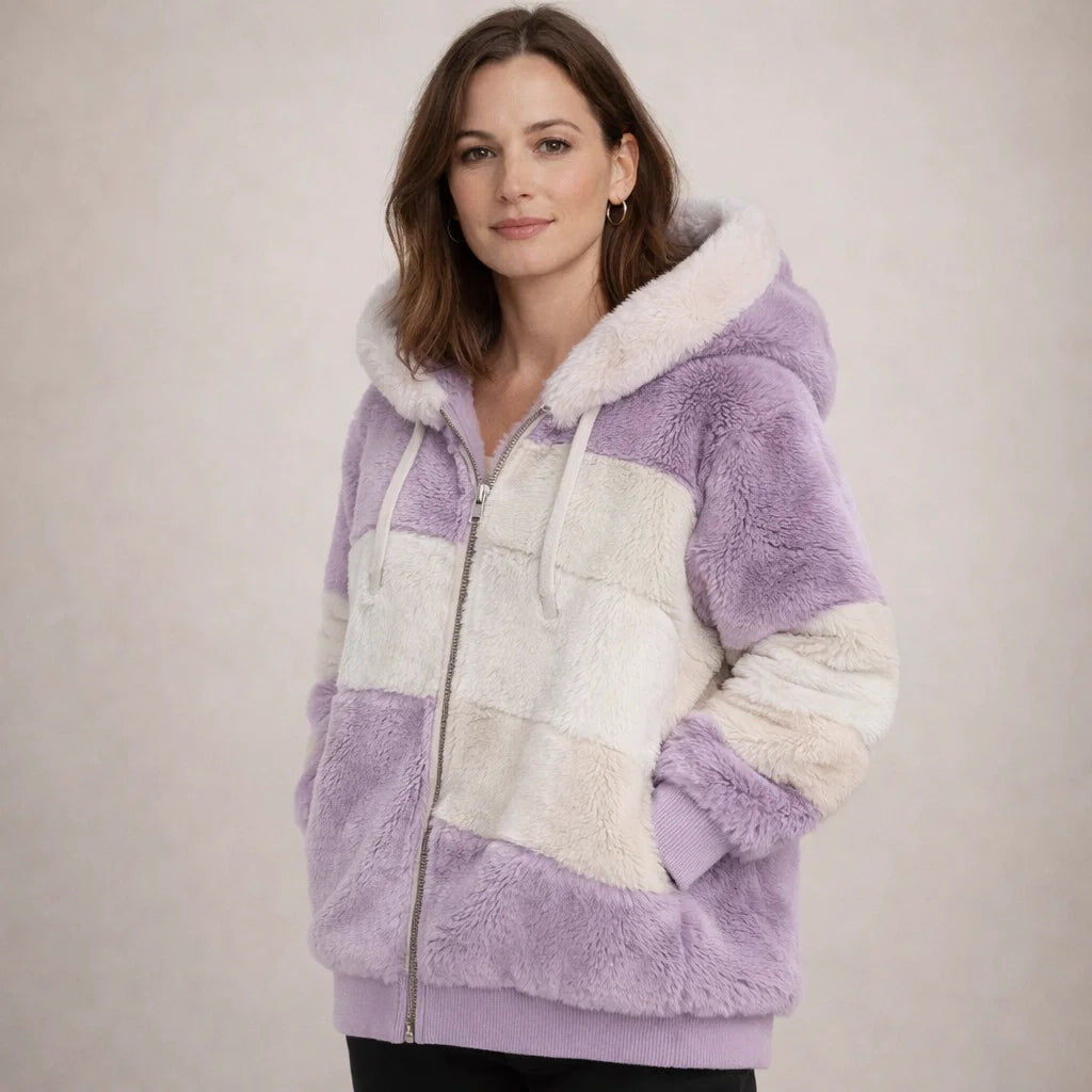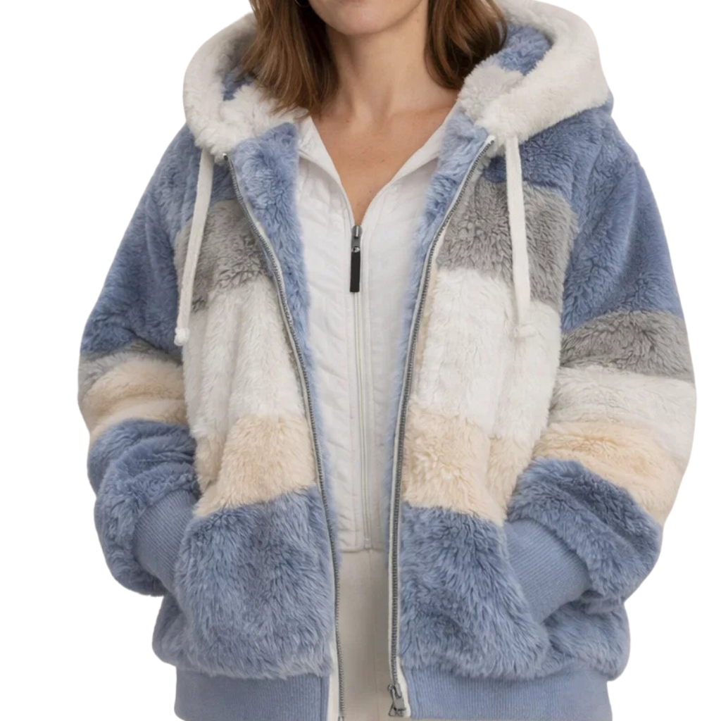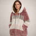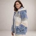 Freya – Oversized Teddy Jas met Capuchon in Kleurblokken