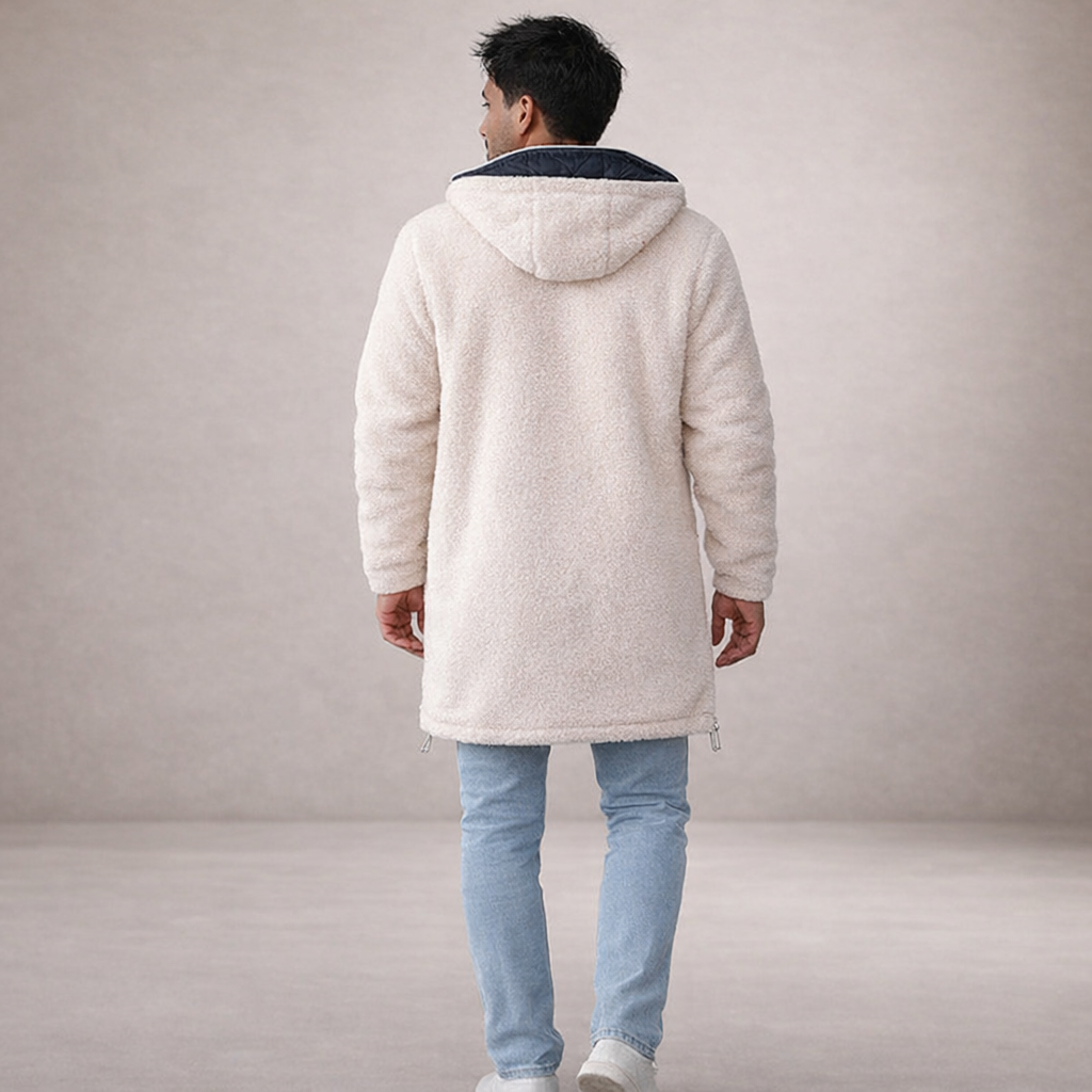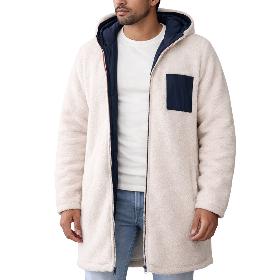 Gino – Omkeerbare Lange Teddy Coat voor Heren in Beige/Blauw