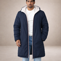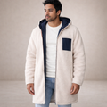 Gino - Omkeerbare Lange Teddy Coat voor Heren in Beige/Blauw