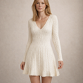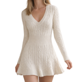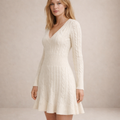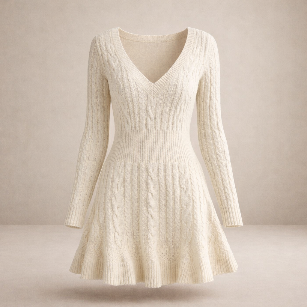 Giselle – Gebreide Jurk met Kabelpatroon en V-hals