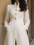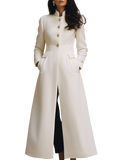 De Helene-jas is een verfijnde interpretatie van klassiek militair maatwerk, waarin kracht en elegantie samenkomen. Gemaakt van een premium wolblend, met een opstaande kraag, goudkleurige knopen en scherpe deelnaden voor een gestructureerde uitstraling. De slim fit met gedefinieerde schouders en taille zorgt voor een krachtige silhouet, terwijl diepe steekzakken praktisch gemak bieden. De lange lengte maakt Helene veelzijdig genoeg voor zowel stadswandelingen als formele gelegenheden.