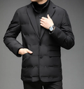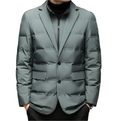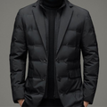 Deze jas biedt de ultieme combinatie van een klassieke blazer en de warmte van een donsjas. Voor de man die stijlvol voor de dag wil komen, zonder in te leveren op comfort, is deze jas een onmisbaar item in de garderobe. Het slanke silhouet benadrukt een verfijnde uitstraling, perfect voor zakelijke of formele gelegenheden.