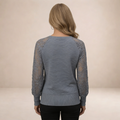 - Mouwen: Lange kanten mouwen met geribde boorden voor een elegante en comfortabele pasvorm.
