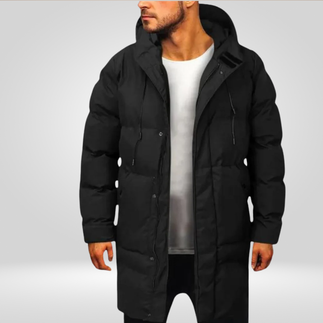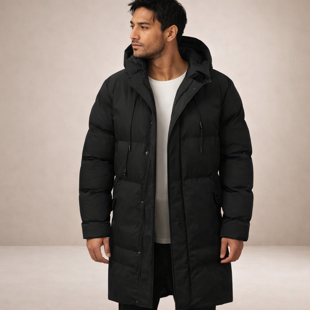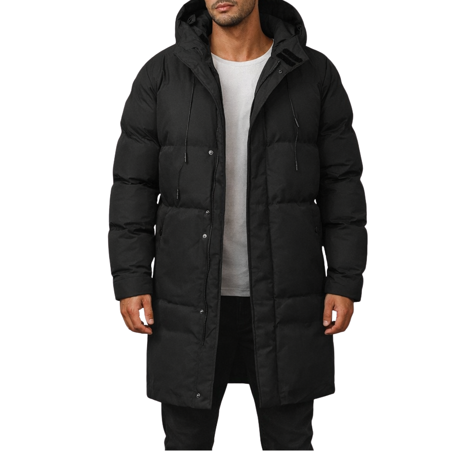 De Kai parka biedt warmte, comfort en een moderne uitstraling tijdens koude dagen. Deze lange pufferjas is uitgevoerd in tijdloos zwart en heeft een gewatteerd ontwerp dat extra isolatie biedt. De capuchon zorgt voor extra bescherming tegen wind en neerslag, terwijl de lange lengte extra warmte rond het lichaam geeft.