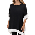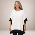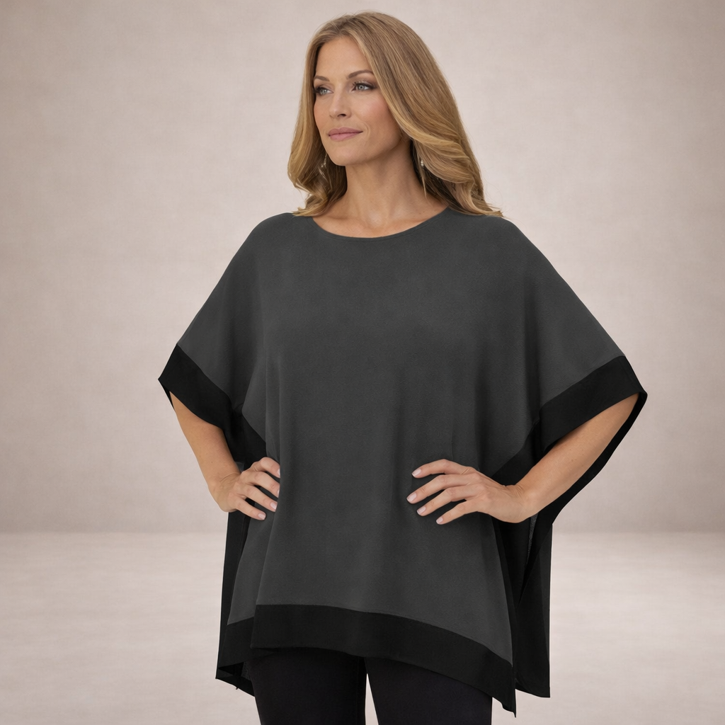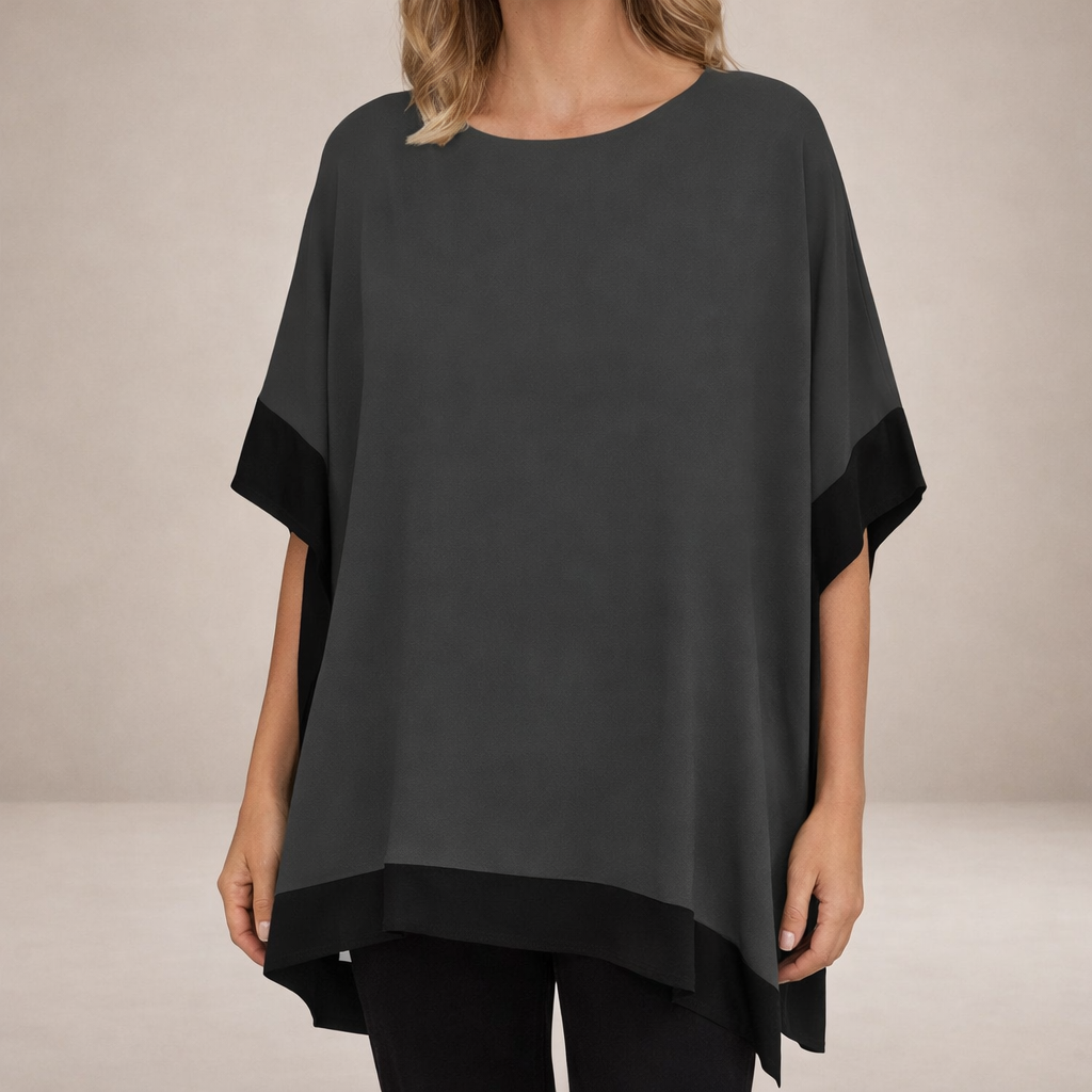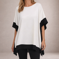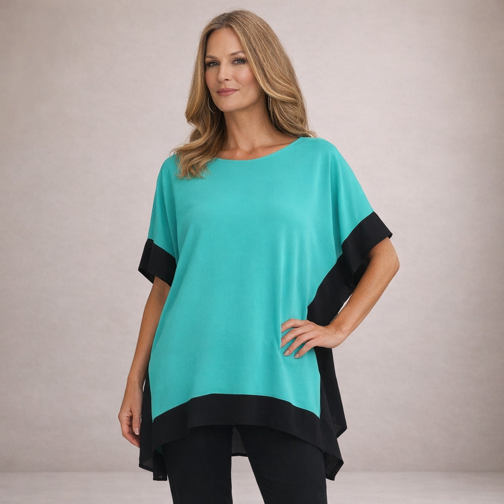 De Kaye top brengt moeiteloze flair en comfort samen in één veelzijdig ontwerp. De losse pasvorm en speelse vleermuismouwen creëren een moderne, ontspannen uitstraling, terwijl het subtiele kleurblokdetail zorgt voor een stijlvolle twist. Perfect voor vrouwen die houden van comfortabele mode met een eigentijdse uitstraling.