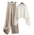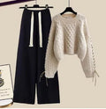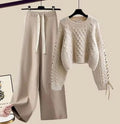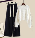 Stap in stijl met Kelsey - een tweedelige set waar comfort en elegantie samenkomen in een gebreide trui en wijde broek.