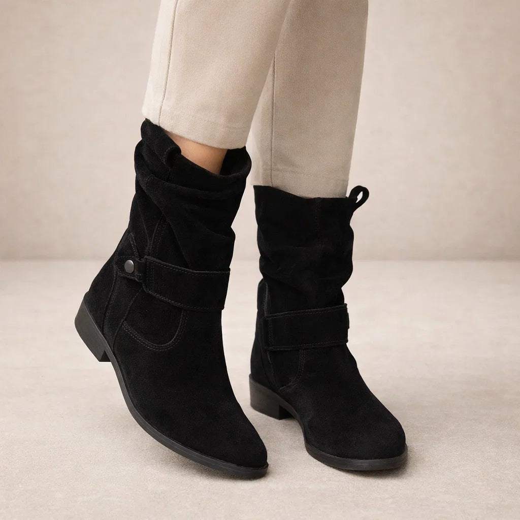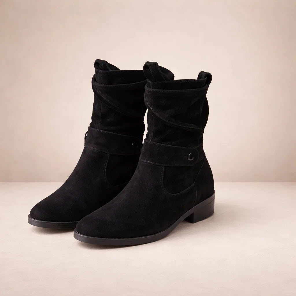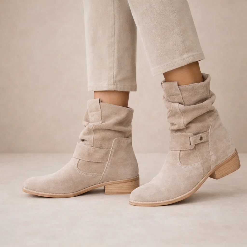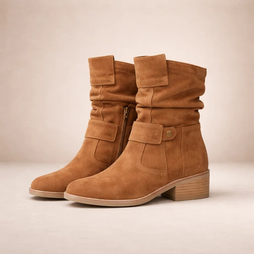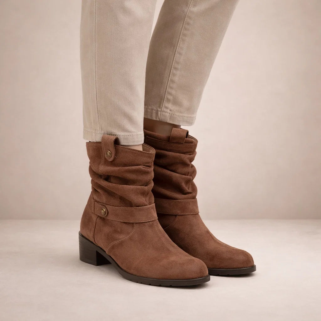Amanda - Stijlvolle Dameslaarsjes van Suède met Comfortabele Lage Hak