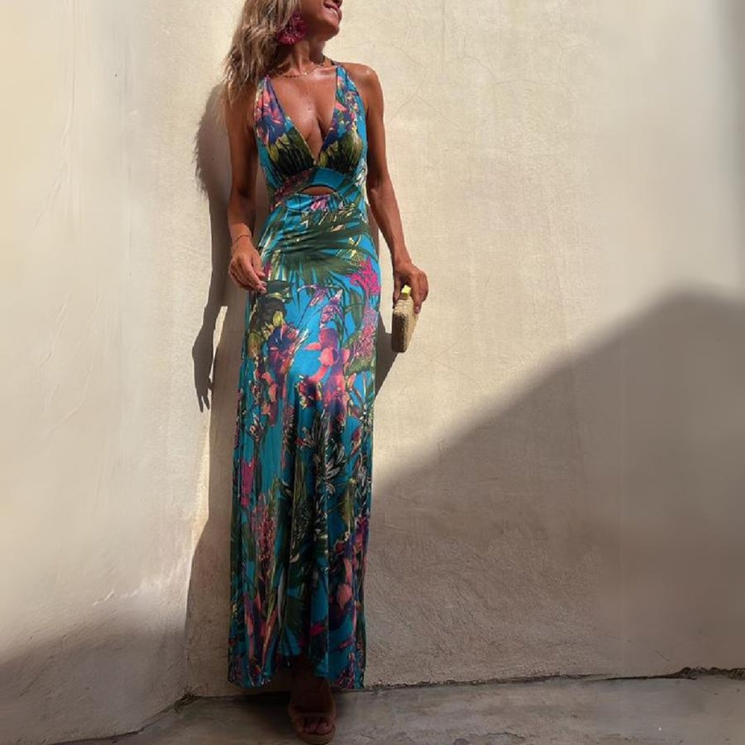 De Kirstin bloemen Italiaanse zomer/lente lange jurk voor dames straalt een zorgeloze en stijlvolle vibe uit. Met zijn prachtige bloemenprint en lichte, luchtige stof is deze jurk perfect voor warme zomerdagen. Geniet van een moeiteloze en trendy look.