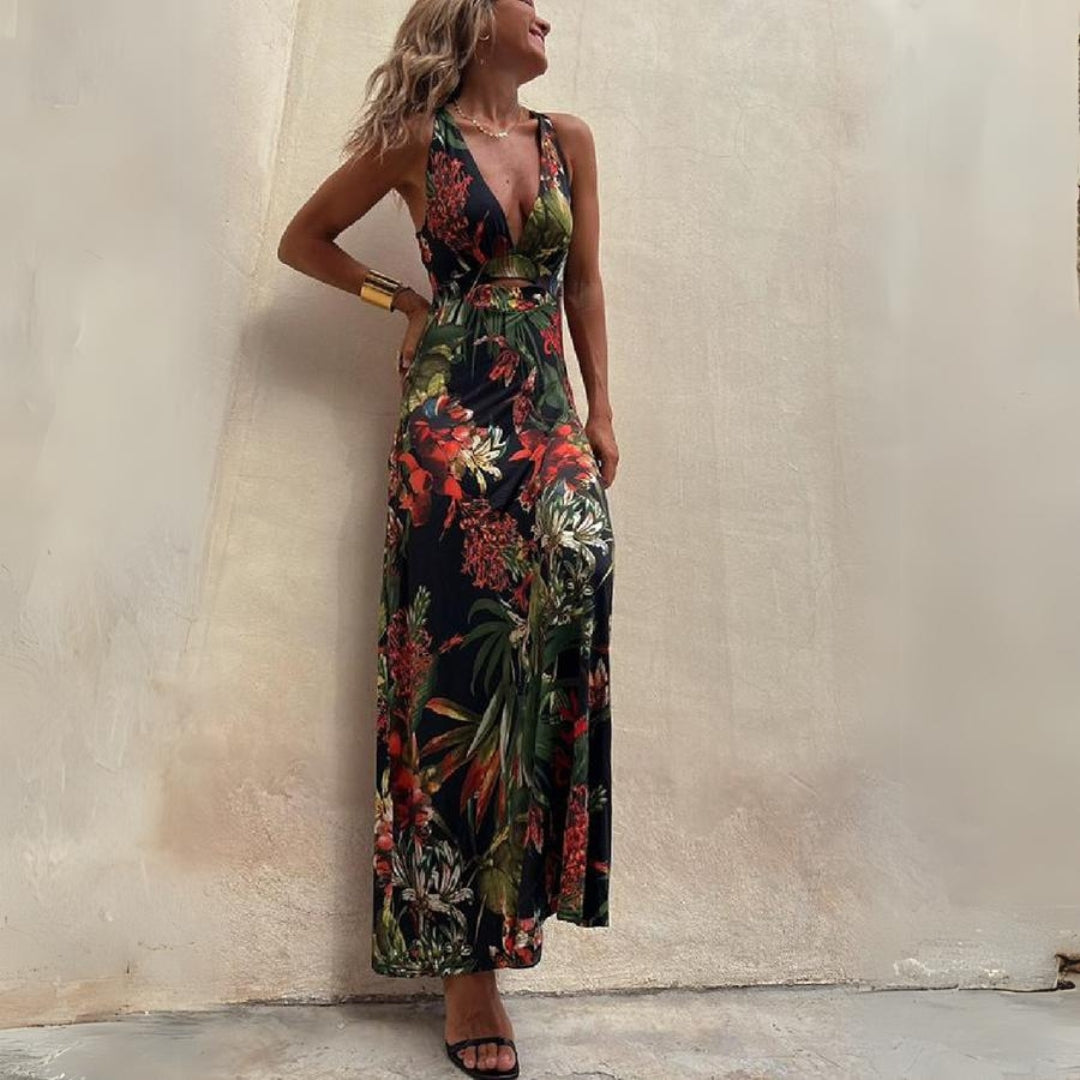 Kirstin - Bloemen Italiaanse Zomer/Lente Lange Jurk voor Dames