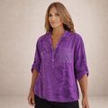 - Sluiting: Halve knoopsluiting aan de voorkant voor een luchtige en veelzijdige look.