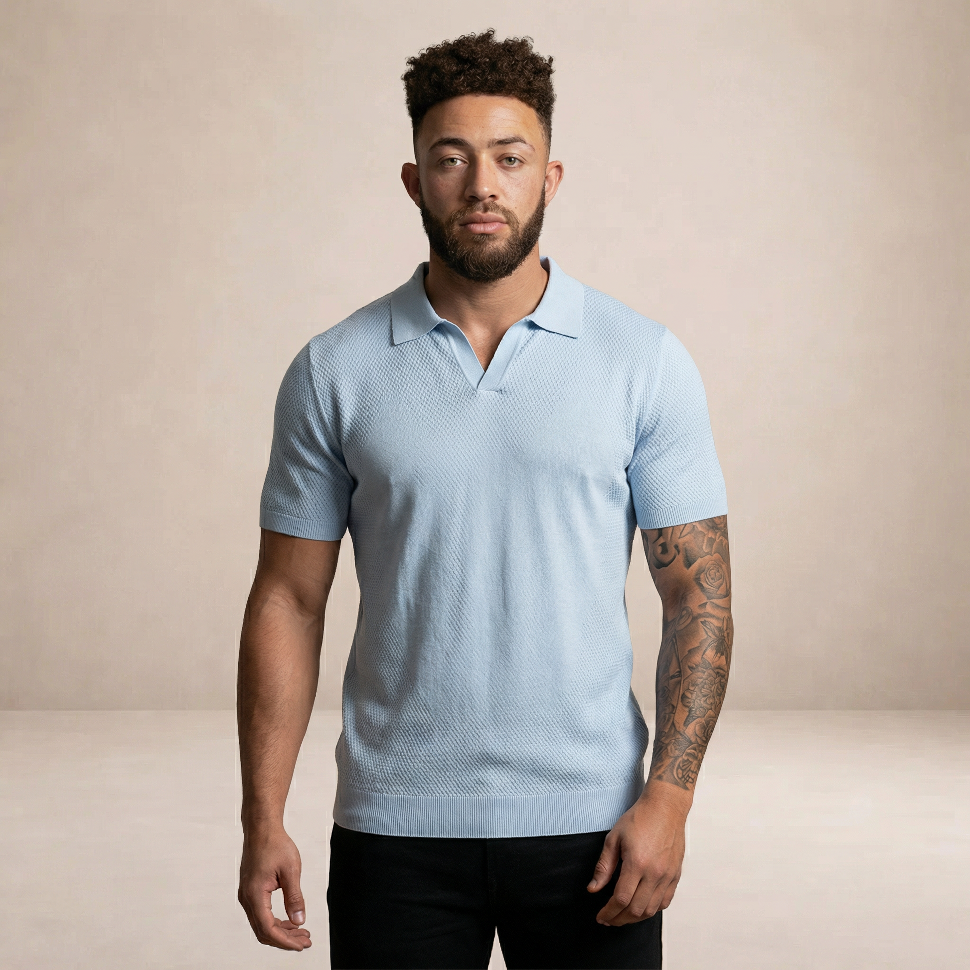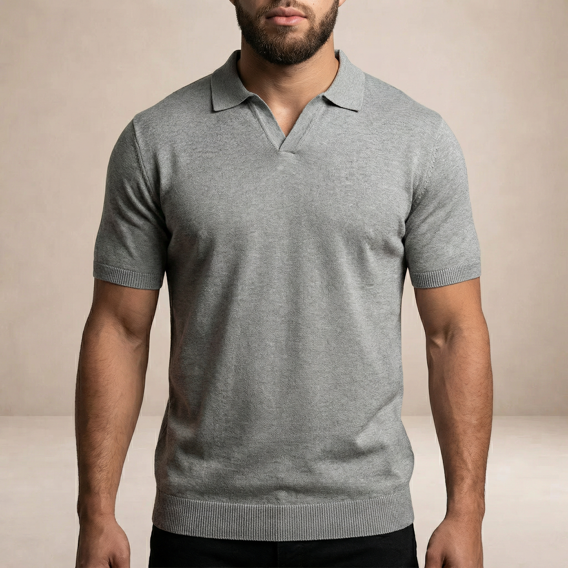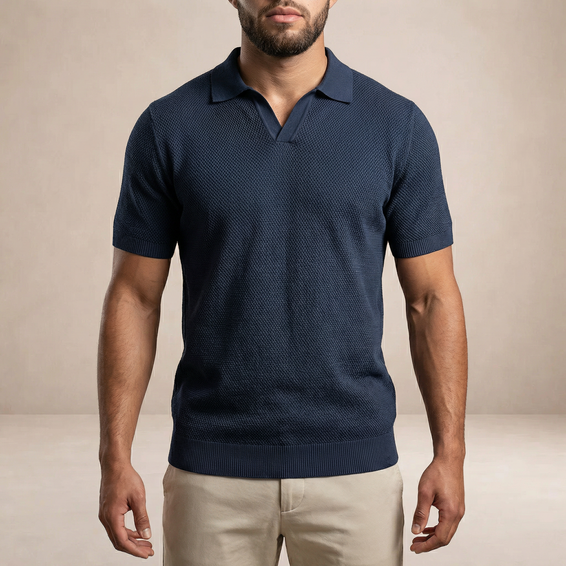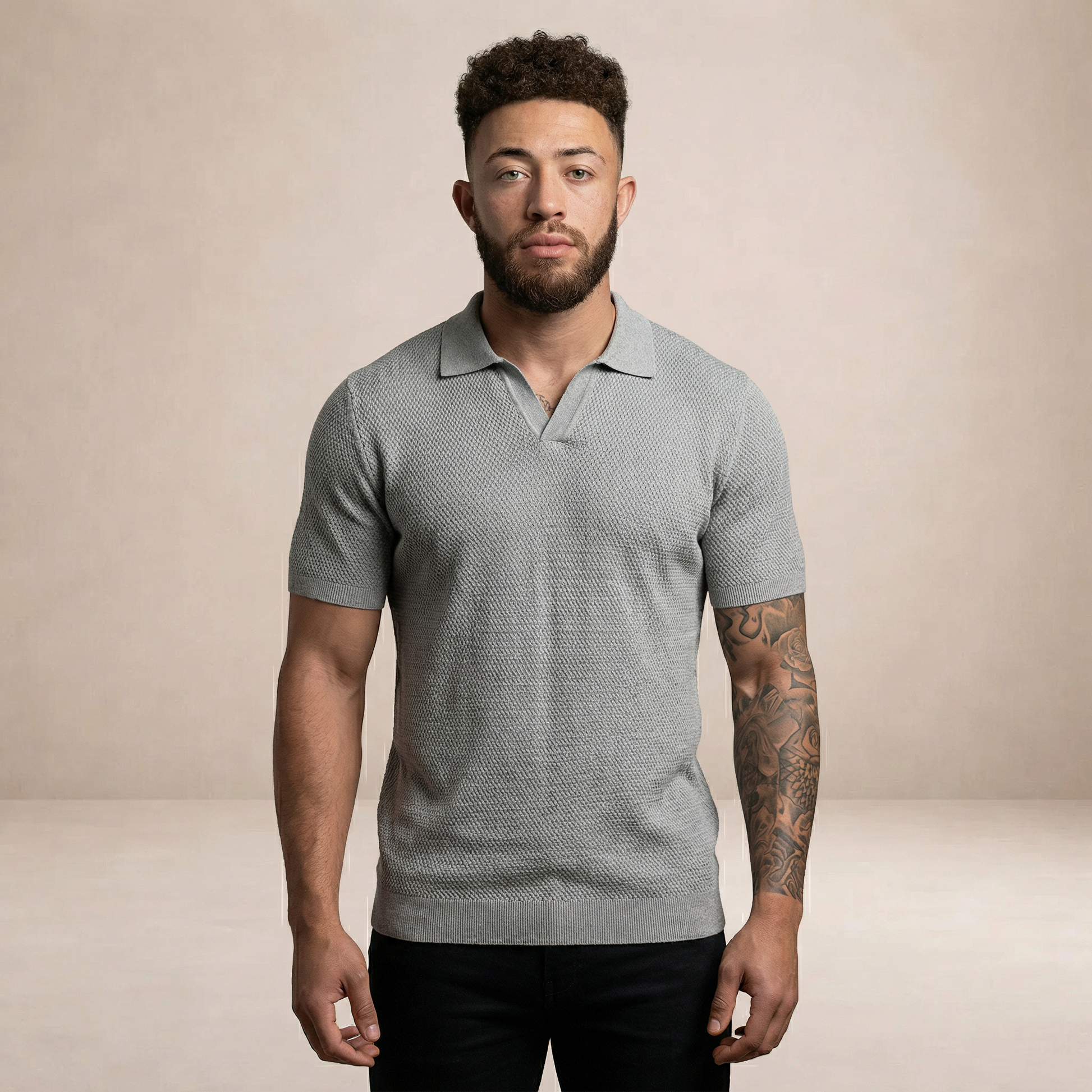Leroy – V-Hals Gebreide Revers Polo voor Heren