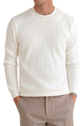Liam – Luxe Ribbelt Knit Heren Trui in Roomwit