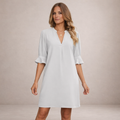 - Details: Luchtige en ademende stof, relaxte fit, elegante V-hals en veelzijdig ontwerp geschikt voor strand en casual momenten.