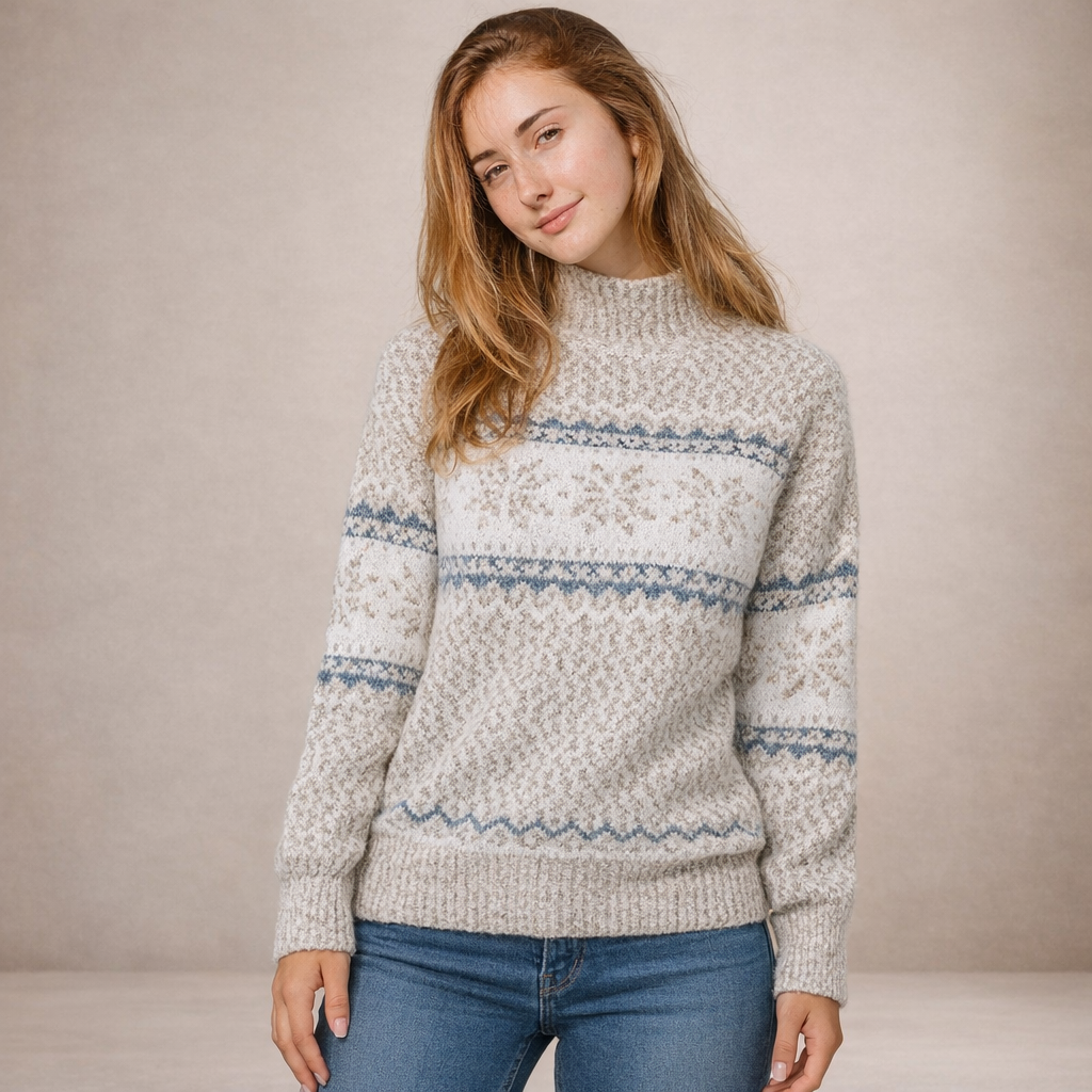 Lotte - Dames Gebreide Trui met Noors Sneeuwvlokpatroon