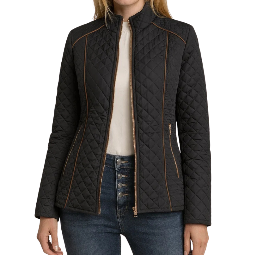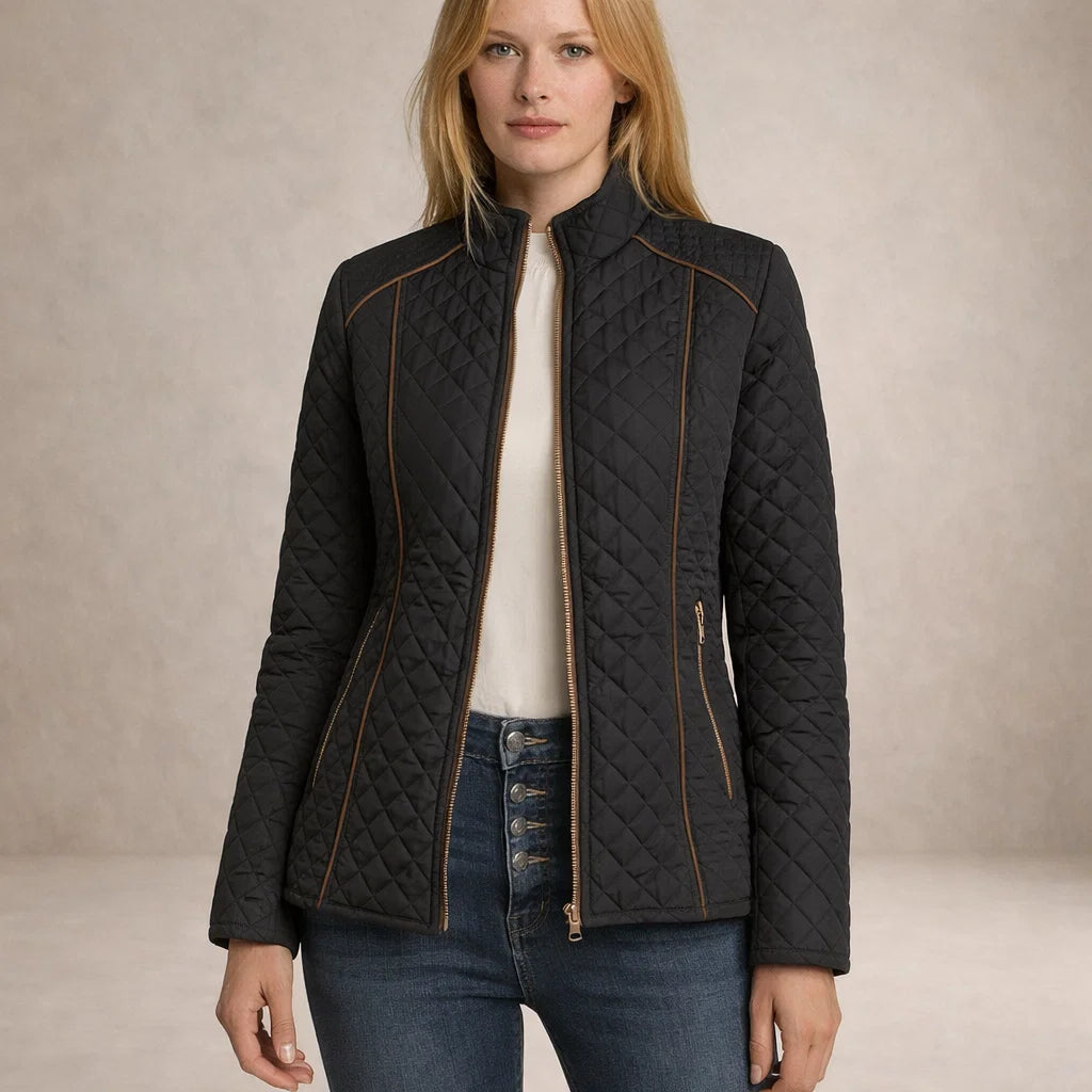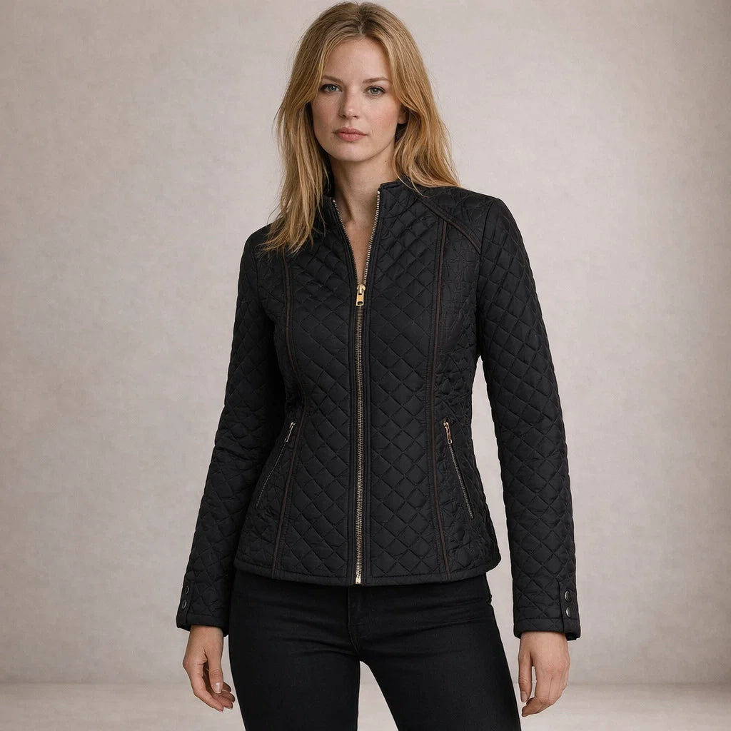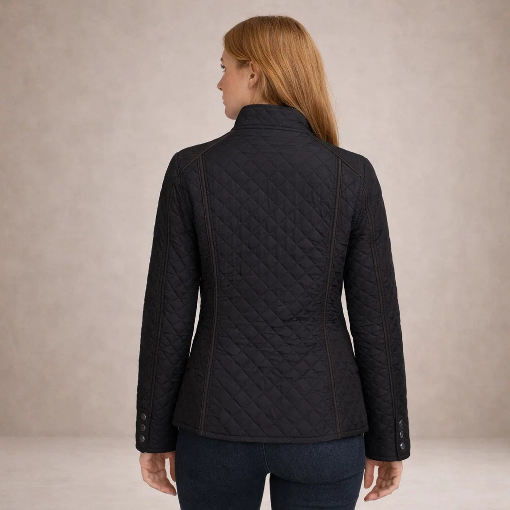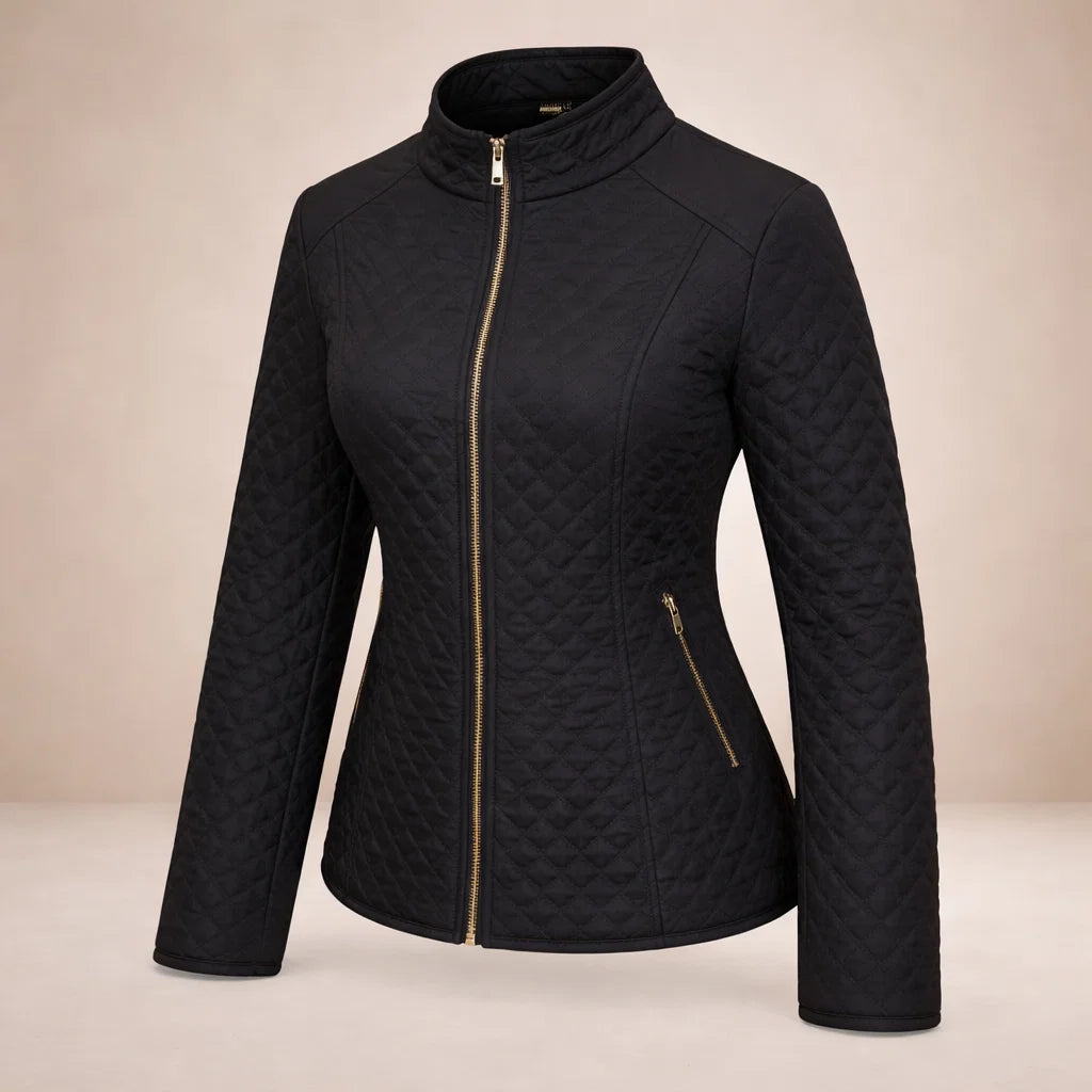 Lotte – Elegante Zwarte Gewatteerde Jas met Diamantpatroon