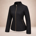 Lotte - Elegante Zwarte Gewatteerde Jas met Diamantpattern