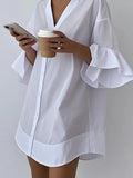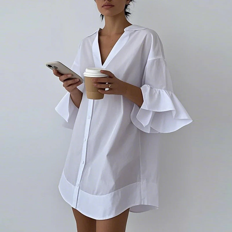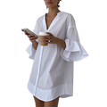 Luna – Katoenen Mini Jurk met V‑Hals voor Dames